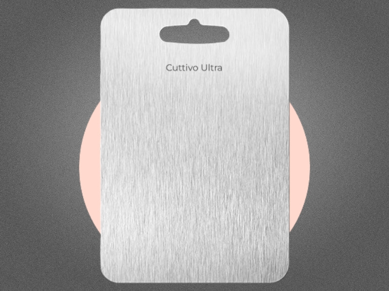 Cuttivo Ultra is a high-end cutting board made from 100% titanium. Its surface is non-porous and free of microplastics, so it doesn't absorb smells, stains, or mold.